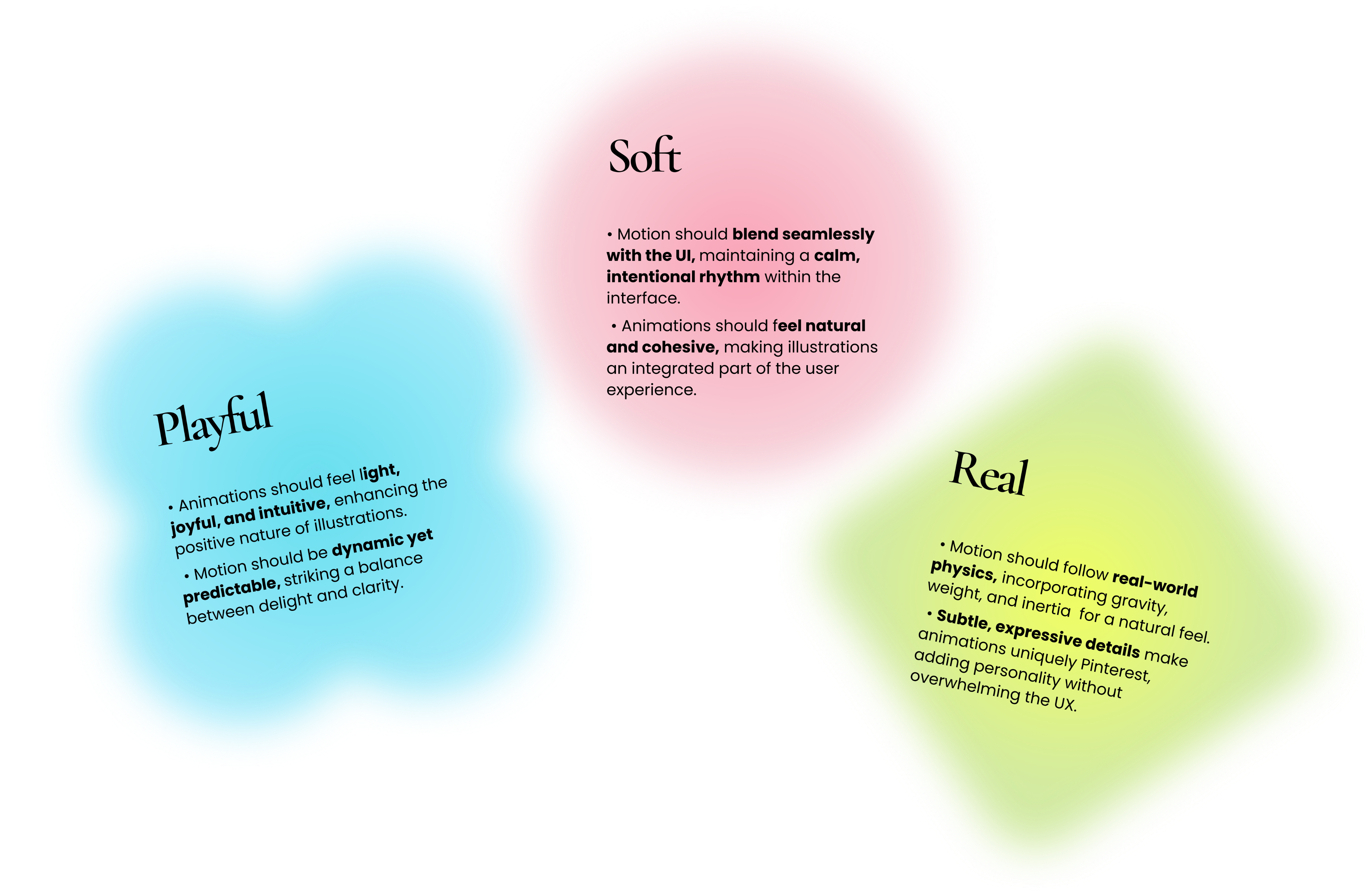 That fragility sat on top of a broader style problem: celebration effects had no shared intensity rules, no consistent visual language, and no guardrails on frequency. The experience felt incoherent – effects clashed with the UI and illustration style, and nothing read as distinctly Pinterest. And every new celebratory moment was a one-off effort: expensive to build, inconsistent in execution, difficult to maintain.